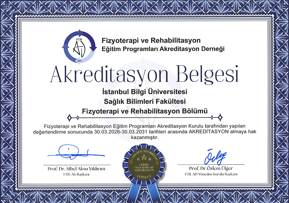 Our Physiotherapy and Rehabilitation Undergraduate Program within the Faculty of Health Sciences has been granted full accreditation for a period of five years by the Association for the Evaluation and Accreditation of Physiotherapy and Rehabilitation Education Programs (FTR-AD).