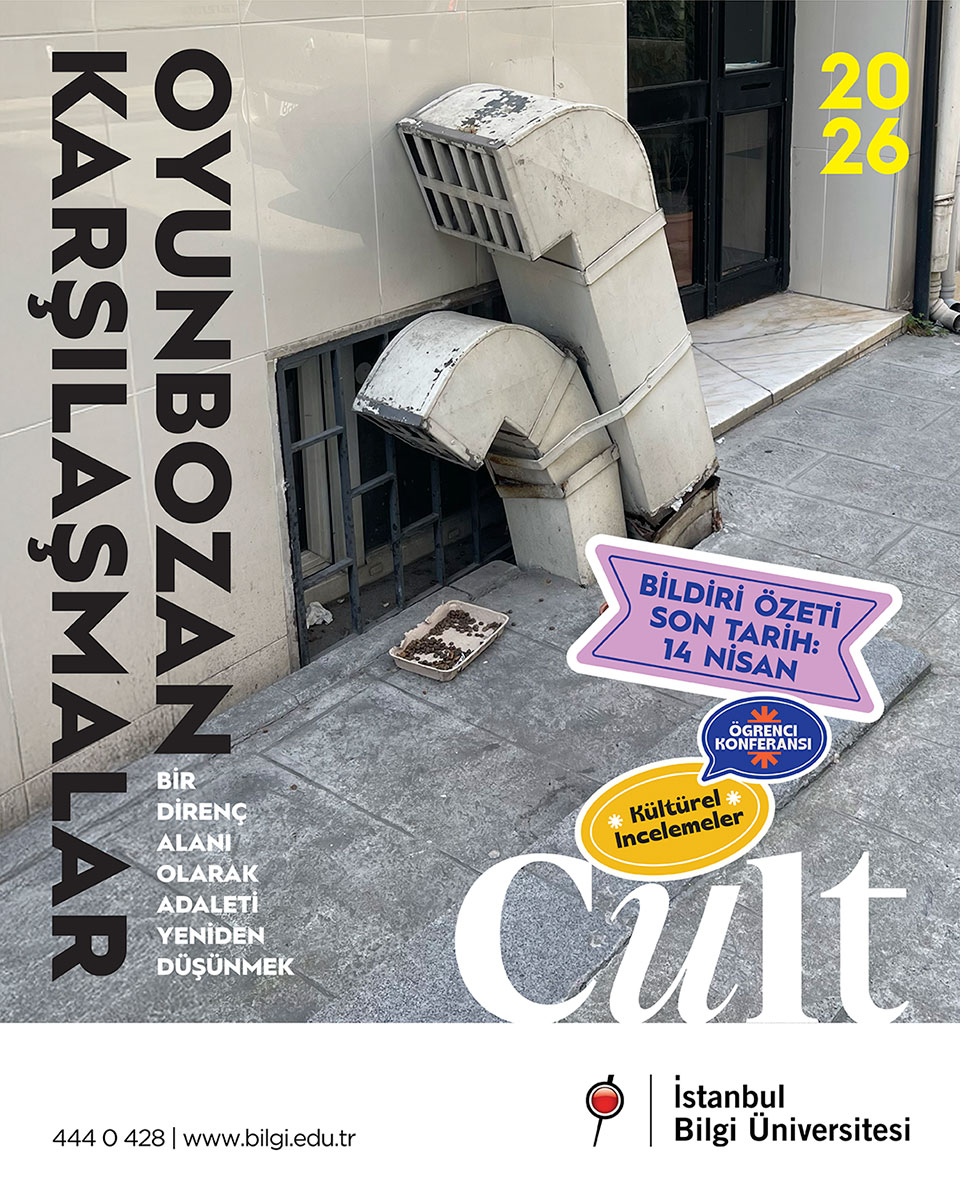 On May 21-22, 2026, as students of the Cultural Studies Master's Program at Istanbul Bilgi University, we are organizing a conference titled “Disruptive Encounters.” In this fifth edition of our conference, we aim to examine the concept of justice alongside disruption and consider it as a space for resistance. We want to discuss the historical, cultural, and political meanings of justice and its transformations in art, literature, and sports in an interdisciplinary manner; we want to think together about how to reproduce the meaning of the concept of justice by using the possibilities of resistance and solidarity as a field of encounter. In this context, we envision productive discussions on the following topics: