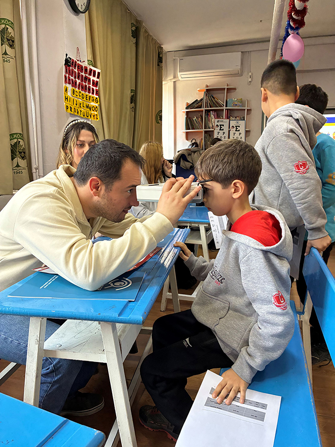 As part of the project titled “A Bright Life with Preventable Blindness,” led by our Opticianry Program, a vision screening for children was carried out at Gümüşgöze Primary School in the Defne district of Hatay.
