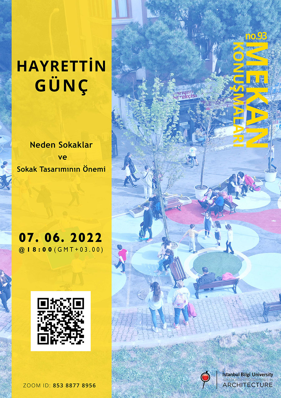 Dönemin son buluşmasında, İstanbul Bilgi Üniversitesi, Mimarlık Yüksek Lisans Programları öğrencilerinin düzenlediği Mekan Konuşmaları serisinin 93.sünde, "Neden Sokaklar ve Sokak Tasarımının Önemi" başlıklı konuşması ile Hayrettin Günç’ü ağırlıyoruz.