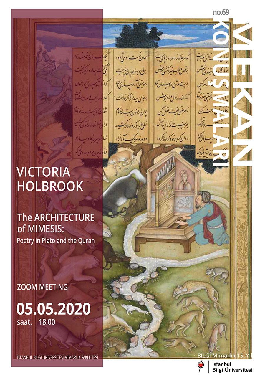 Oluşan koşulların Doğu-Batı ayrımı olmaksızın toplumları aynı düzlemde buluşturduğu bugünlerde, İstanbul Bilgi Üniversitesi'nden Dr. Victoria Holbrook, sanatın, siyasi yaşamın temsilinin ve epistemolojinin temelindeki "mimesis" kavramını, Plato'nun çalışmalarında ve Kuran'daki mekansal “mimesis” anlayışının ortaklıkları üzerinden tartışacak.